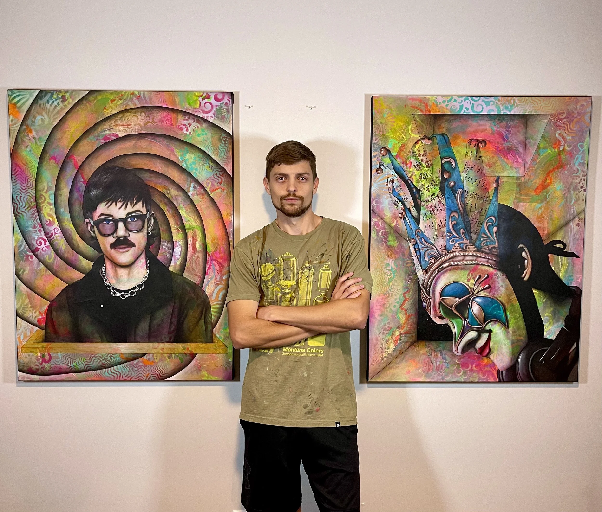 After exploring many painting mediums and working exclusively in oil paints for many years I eventually became interested in the world of spray paint and graffiti. Falling in love with spray paint led me to combining it with acrylic paints, which are my two mediums of choice today.
